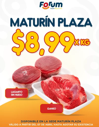 ¡Aprovecha hoy! ¡Los productos infaltables del mes! ¡Super Oferta en Carnicería! Disponibilidad descrita al pie de imagen ¡Exclusivo en Maturín Plaza! Disponibilidad descrita al pie de imagen Super Ofertas